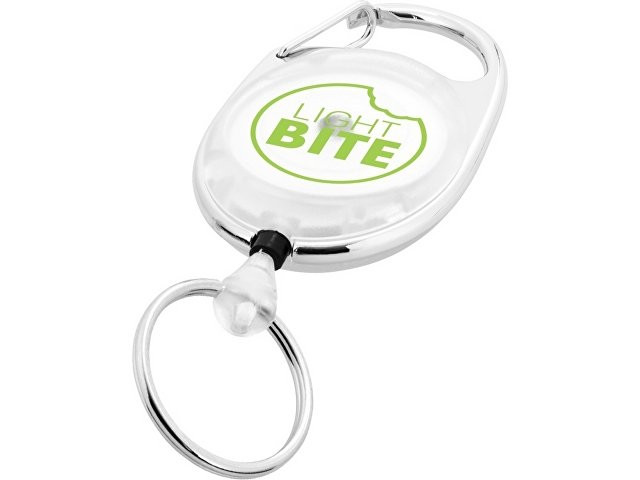 Брелок с ретрактором Demos идеальный предмет для любого офиса, торговой ярмарки, конференции или горнолыжного склона. Роликовая клипса оснащена карабином, а благодаря прочному механизму и шнуру длиной 60 см посетитель может легко прикрепить к нему бейдж.