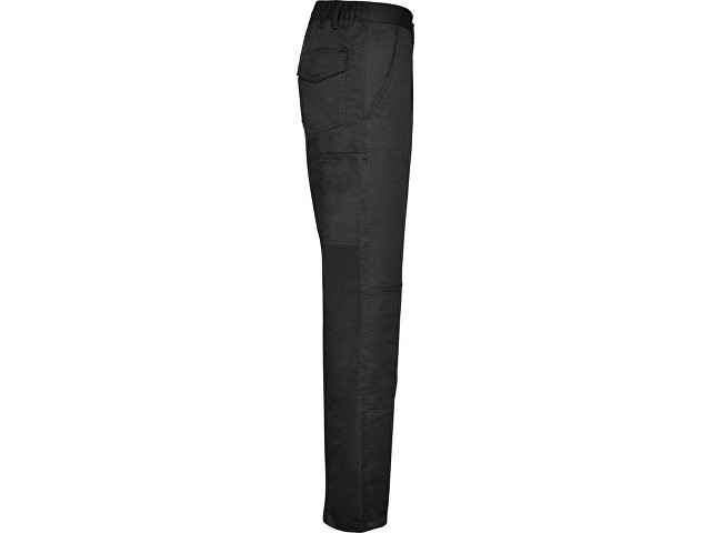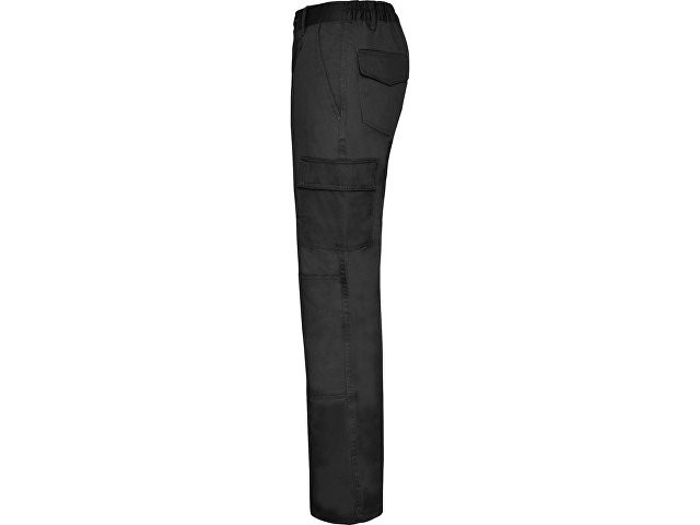 Брюки из прочной ткани. 1. Регулируемый эластичный пояс сзади. 2. Два кармана спереди. 3. Функциональный карман сзади с клапаном на липучке. 4. Два функциональных боковых кармана с клапаном на липучке. 5. Дополнительное усиление сзади для защиты от протирания при сидении. 6. Двойная ткань на коленях. 7. Боковой маленький карман справа