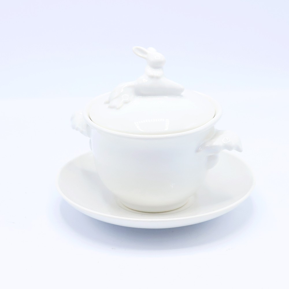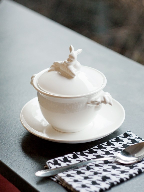 Чашечка горячего ароматного супа со специями - лучшая возможность сохранить хорошее самочувствие в период холодов. Кролик бережно укроет ваш обед крышечкой, и он не остынет, дожидаясь, пока вы закончите работу или ответите на телефонный звонок. Bon appetit! Объем : 425 мл Диаметр блюдца: 18 см В комплекте бульонница с блюдцем Материал - фарфор Производитель: CLAYSTREET, Ростов на Дону