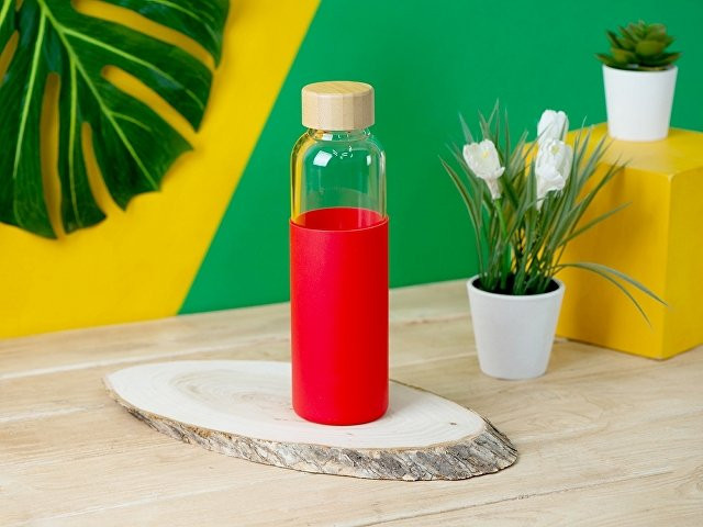 Бутылка для воды стеклянная "Refine", в чехле, 550 мл, красный