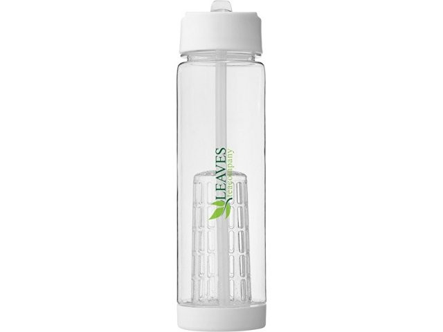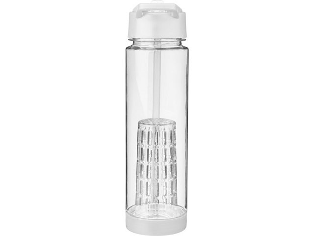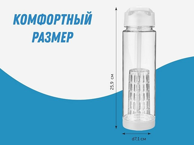 Оригинальная бутылка для воды. Благодаря отделению для фруктов есть возможность создания лимонада на свой вкус. Придется по вкусу любителям натуральных продуктов и здорового образа жизни. Легко разбирается. На пластиковый корпус возможно нанесение тампопечати. Объем – 740 мл.