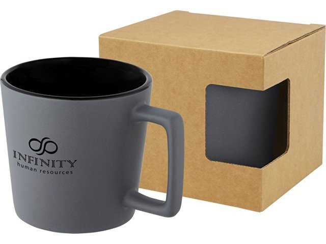Керамическая кружка с современным дизайном и матовой отделкой. Объем 370 мл. Можно мыть в посудомоечной машине. Поставляется в упаковочной коробке из переработанного картона. Керамика.