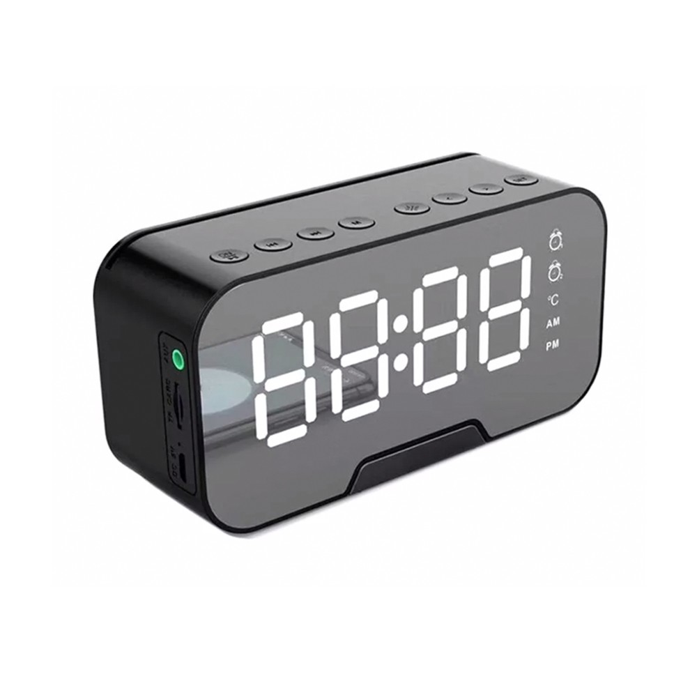 Популярная модель электронных часов Alorra заслуженно занимает первое место как наиболее функциональные и практичные цифровые часы. Зеркальная поверхность экрана, яркое отображение времени и великолепный бонус в виде беспроводной колонки, радиоприемника и выдвижной подставки для телефона. Размер товара в индивидуальной упаковке: 15.3 * 9.5 * 5 Вход: 5V/2A USB кабель (Мощность колонки 4Ω х 3W) Тип батареи: встроенная Li-ion батарея 1400 mAh. Упаковка: коробка (+ пакет, руководство пользователя на русском языке, кабель для зарядки) Функции: Время / Температура / Будильник / Колонка bluetooth / Держатель мобильного телефона / FM-радио / Разьем HiJack 3.5мм / Hands free speaker