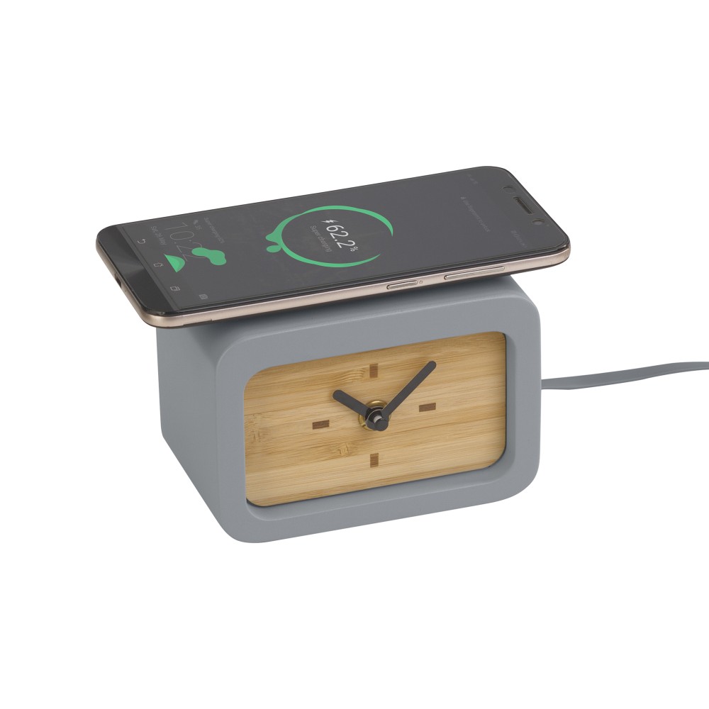 Часы работают от батарейки типа АА, мобильный формат позволяет переносить и размещать их в любом удобном месте. Для активации функции беспроводного заряда необходимо подключить часы к источнику питания с помощью встроенного кабеля USB.