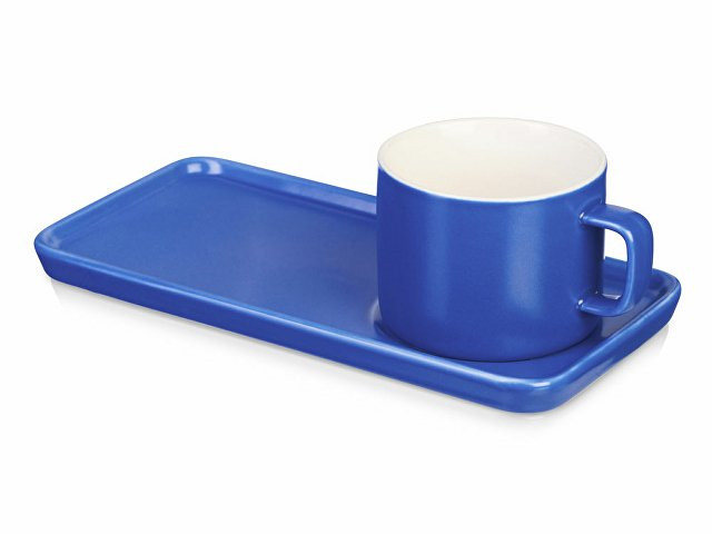 Чайная пара с необычным прямоугольным блюдцем — на нем хватит места не только для чашки, но и для пирожного. Весь силуэт этого комплекта — лаконичный, строгий, прямоугольный, что создает прекрасный фон для нанесения логотипа. Удобство этой чайной пары еще и в том, что для чашки предусмотрена отдельная ниша, которая не даст ей соскользнуть. - большое блюдце необычной формы с местом для чайного пакетика или печенья - кружка белая внутри и яркая снаружи - удобная ручка - костяной фарфор