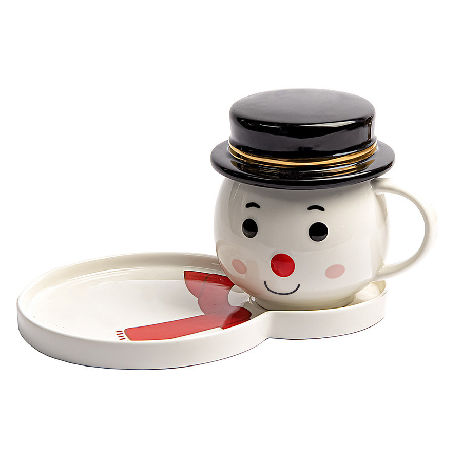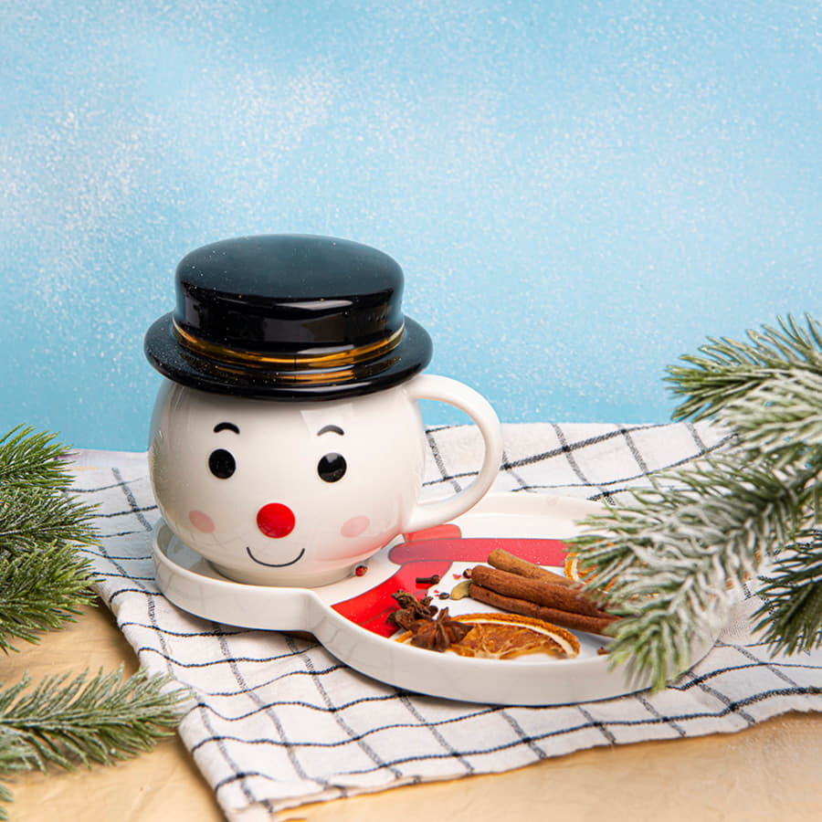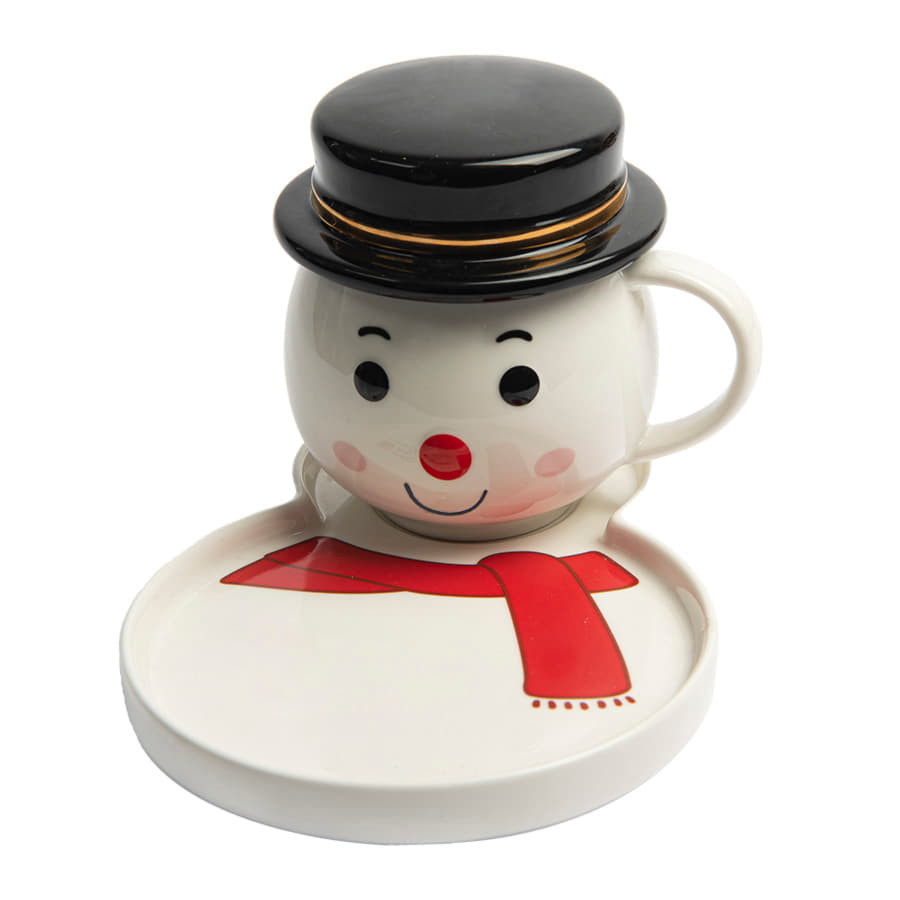 Чайная пара СНЕГОВИК с крышкой, белый, черный