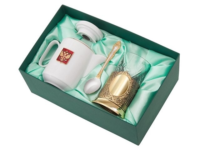 Расчет нанесенияЧайный набор «ЭГОИСТ» - это идеальный подарок для ценителей русской культуры. Набор состоит из золотистого подстаканника, хрустального стакана, ложки и фарфорового чайника. Чайный набор совмещает в себе практическую пользу и традиционную эстетику.