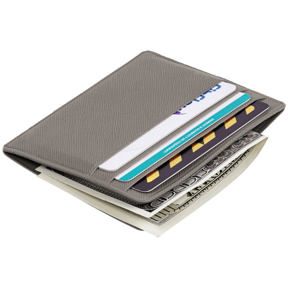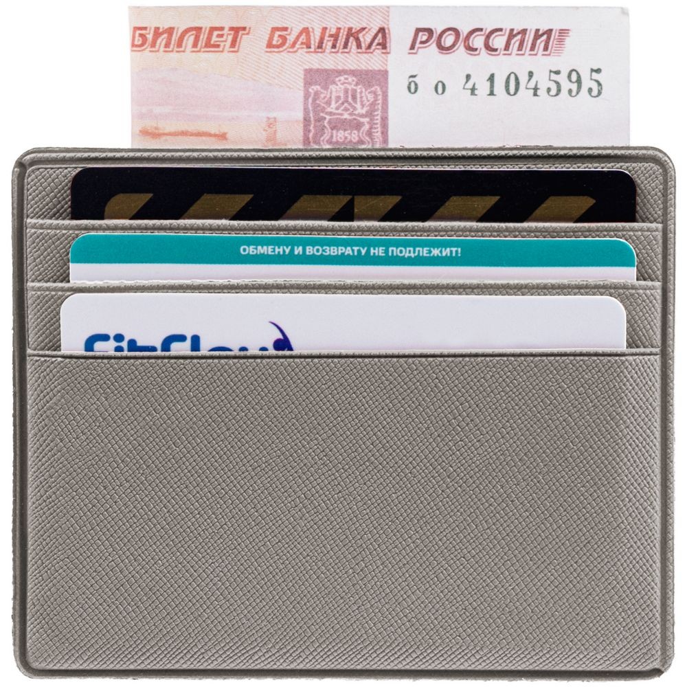 Чехол для карточек из искусственного материала, имитирующего сафьяновую кожу, с шестью отделениями для кредитных карт и одним — для сложенных купюр.
