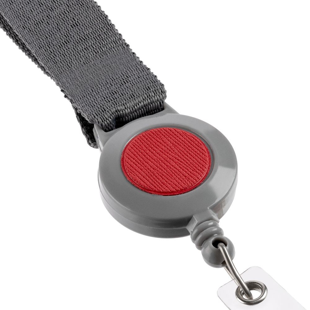Чехол для пропуска из искусственного материала с пластиковым окошком, прикрепленный пластиковым клипом к ретрактору и ленте.
