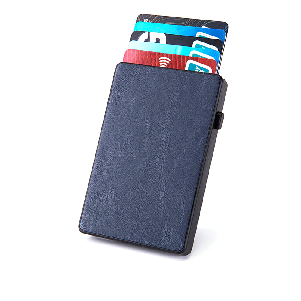 Современный практичный способ хранить и использовать банковские карты – держатель Amir с приятным покрытием из искусственной кожи. Бокова кнопка позволяет легко извлекать карты из бокса с защитным покрытием против копирования данных. Может вместить 5 карт, информация носит справочный характер, поскольку количество вмещаемых карт зависит от их толщины.