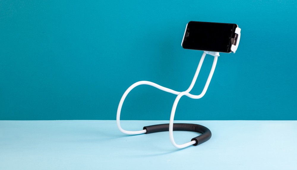 Универсальный держатель для мобильных устройств. Раздвижной захват подходит для устройств размером от 12,3 до 19,5 см. Гибкая конструкция позволяет задать нужную форму, использовать аксессуар как держатель телефона в удобном положении и как настольную подставку. Мягкая нескользящая вставка снижает нагрузку на шею.