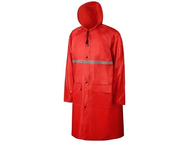 Длинный дождевик выполнен из полиэстера с водоотталкивающей пропиткой. Застегивается на молнию, поверх которой — планка на кнопках, что дополнительно защищает от ветра и промокания. Посадку капюшона можно регулировать при помощи шнурка, ширина рукава регулируется кнопкой. Светоотражающая тесьма на груди и спине делает человека в плаще заметным даже в темное время суток. Вместительные накладные карманы защищены сверху клапаном. Дополнительная проклейка швов дождевика обеспечивает большую степень водонепроницаемости. - водонепроницаемость обеспечивается водоотталкивающей пропиткой материала и дополнительной проклейкой швов - светоотражающие элементы делают человека заметным в темное время суток - вместительные накладные карманы