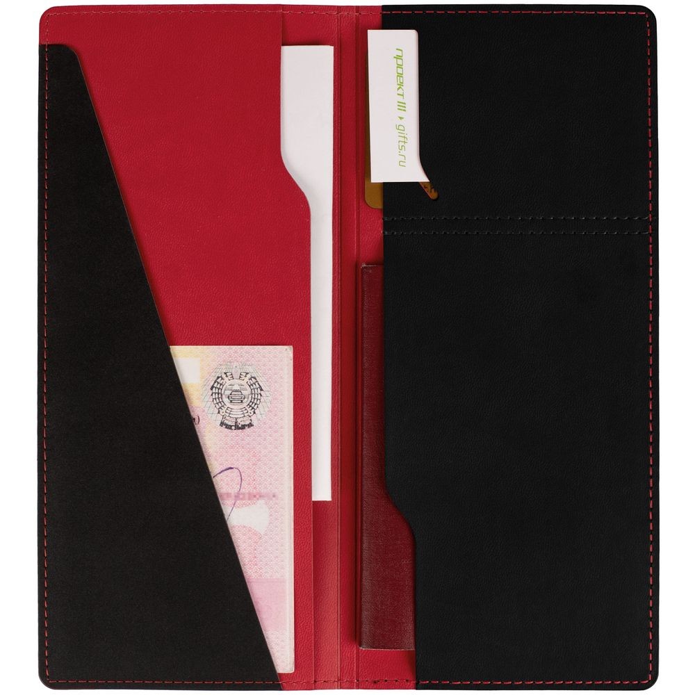 Имеет 5 отделений: для билетов, паспорта, визиток или кредитных карт.