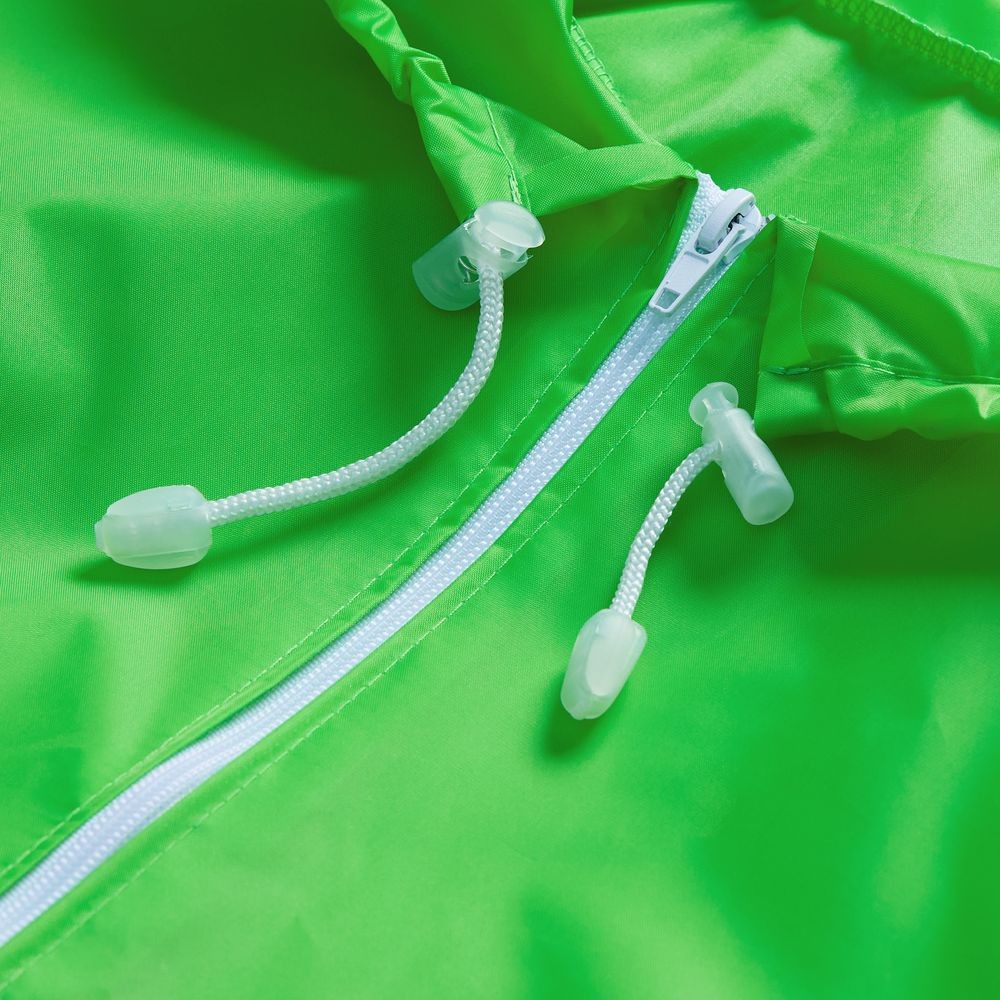Детский дождевик на молнии из таффеты с влагозащитным покрытием. Складывается в мешочек —  удобно брать с собой.