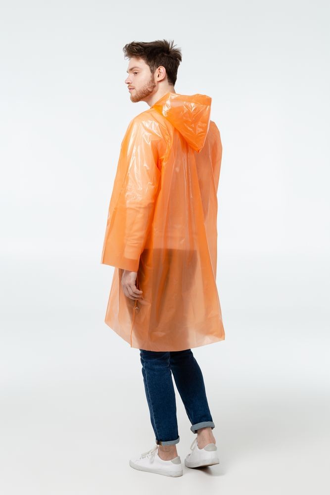 Дождевик-плащ с капюшоном и длинными рукавами из полиэтилена высокого давления (ПВД).