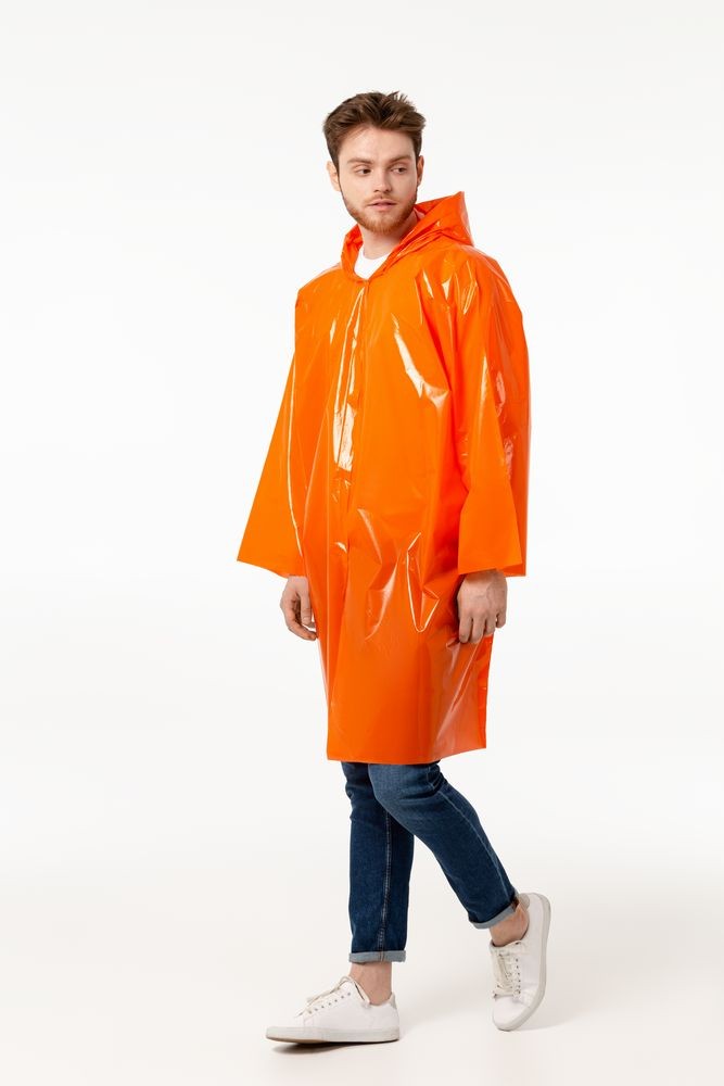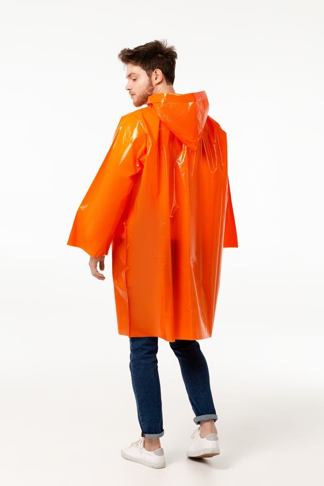 Дождевик-плащ с капюшоном и длинным рукавом из плотного полиэтилена высокого давления (ПВД).
