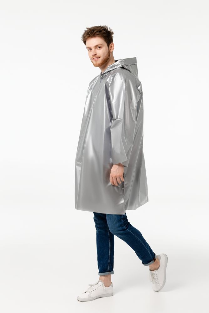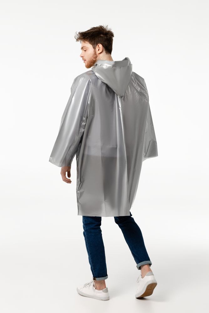 Дождевик-плащ с капюшоном и длинным рукавом из плотного полиэтилена высокого давления (ПВД).