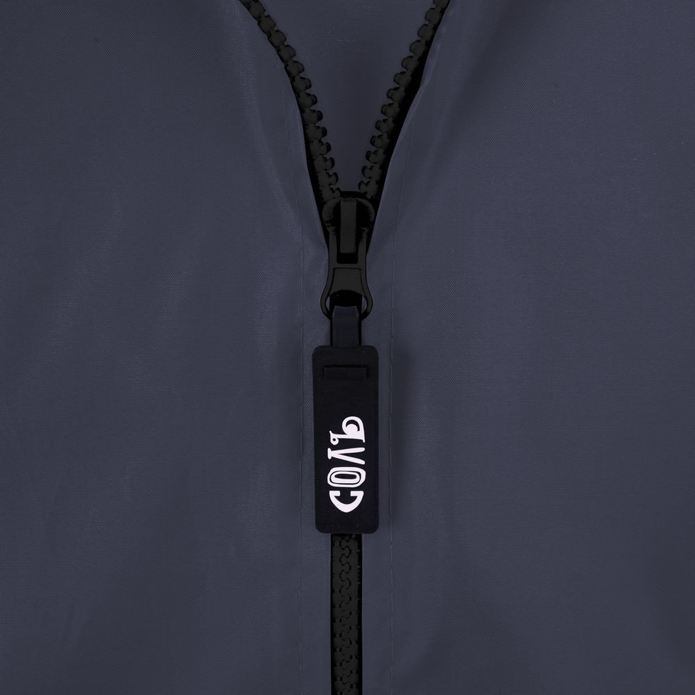 Плащ-дождевик из ткани таффета на молнии с капюшоном. Складывается в мешочек — удобно брать с собой.