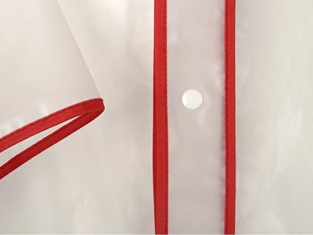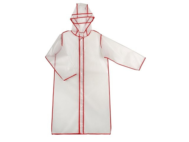 Плащ-дождевик на кнопках с капюшоном «Providence» Непромокаемый материал EVA - современный и лёгкий Удлиненная модель Прямой крой, втачной рукав Регулировка ширины рукава по низу при помощи кнопки Капюшон с козырьком и утягивающим шнуром Полупрозрачный с цветной окантовкой Складывается в компактную сумку-чехол на кнопках