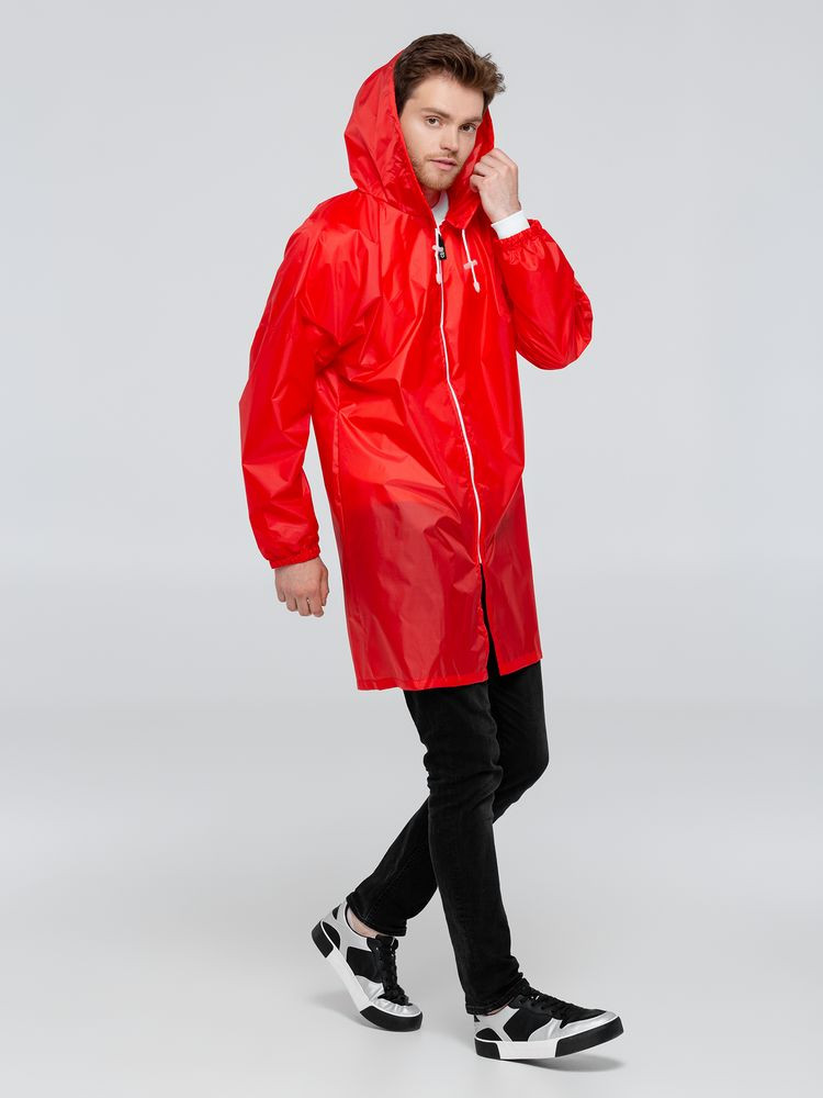 Плащ-дождевик из ткани таффета на молнии с капюшоном. Складывается в мешочек — удобно брать с собой.