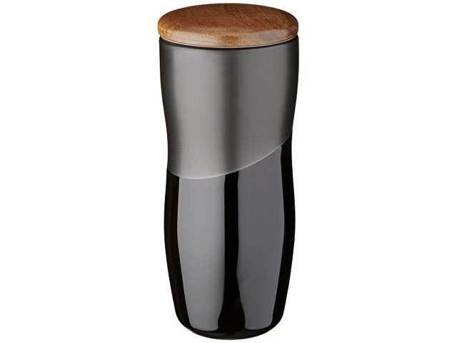 Двустенная керамическая термокружка Reno объемом 370 мл. Двустенная керамическая термокружка с контрастным дизайном из матового и блестящего покрытия. Кроме того, двустенная керамическая конструкция препятствует образованию конденсата на внешней стороне стакана. Оснащена деревянной нажимной крышкой. Номинальный объем кружки 370 мл, при использовании крышки максимальный полезный объем составит 335 мл.