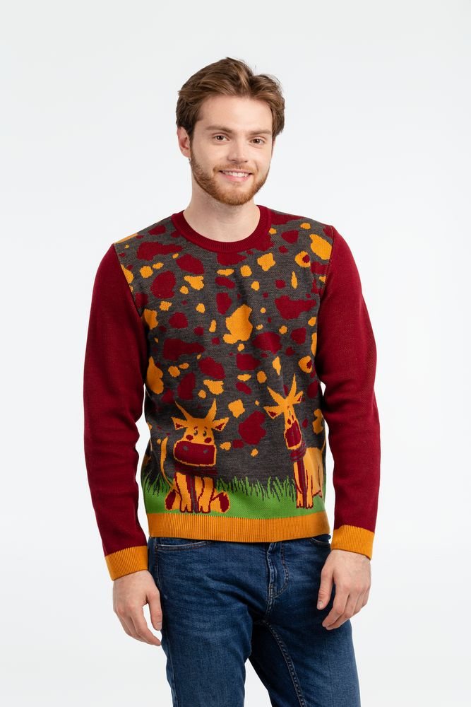 Джемпер с круглым вырезом и жаккардовым рисунком.