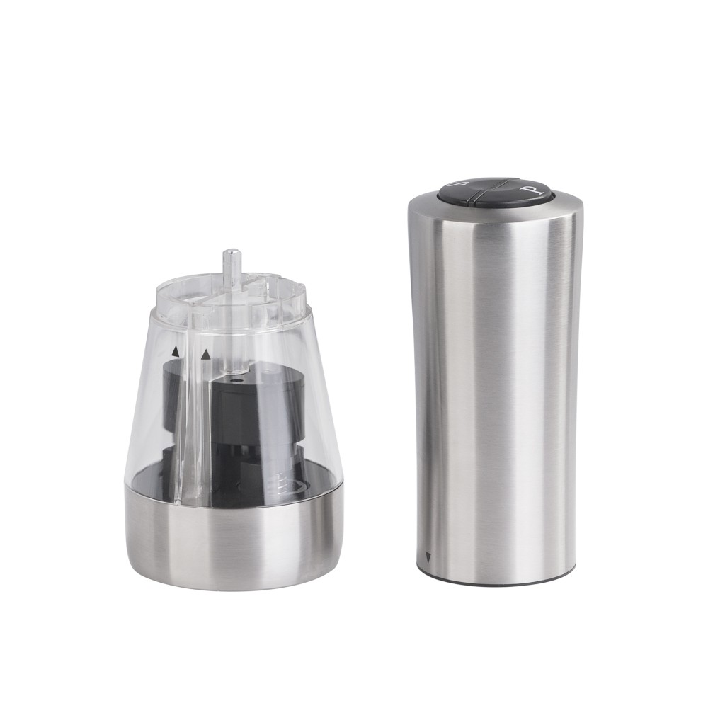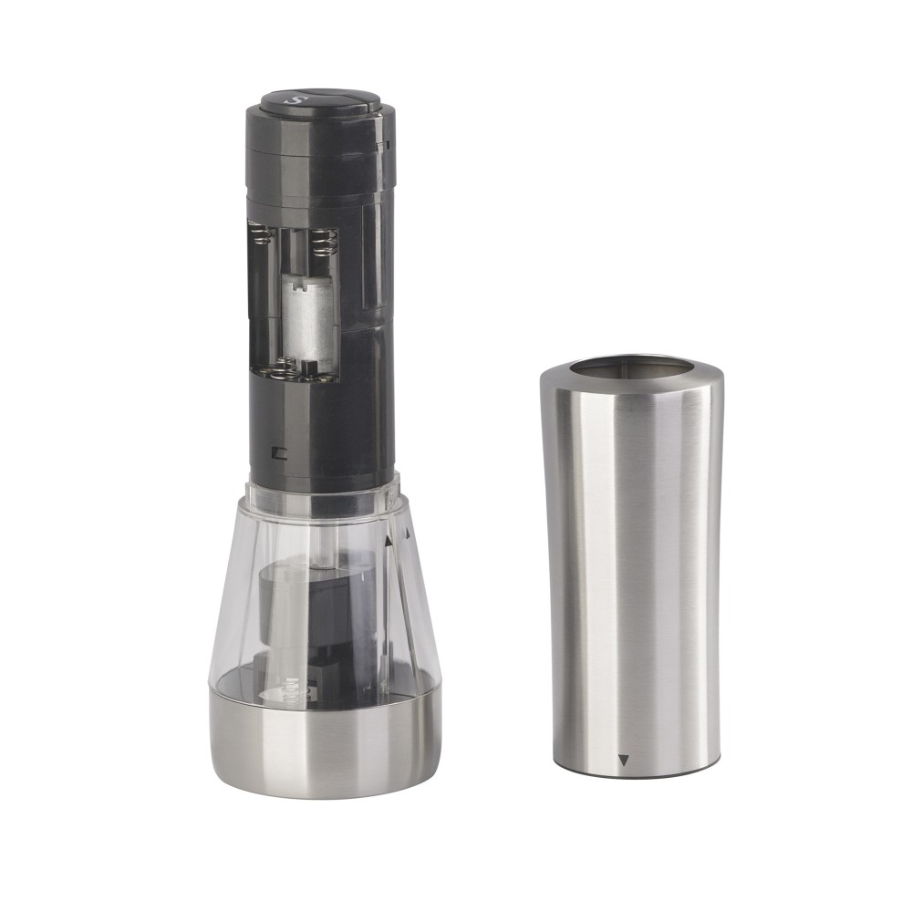 Электрическая мельница "Salt&Pepper" находка для любителей готовить. Двойной отсек позволяет разделить приправы. Корпус выполнен из пищевой нержавеющей стали, жернова из керамики. Степень помола можно регулировать. Не допускайте перевод регулировочного винта в крайние положения. Работает от батареек ААА 6 шт. (не комплектуются)