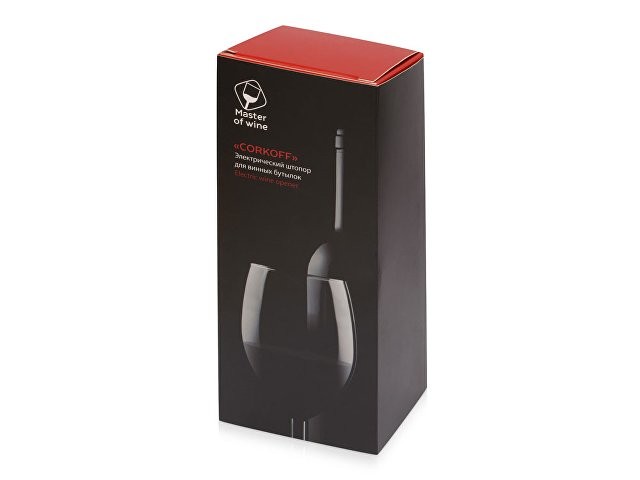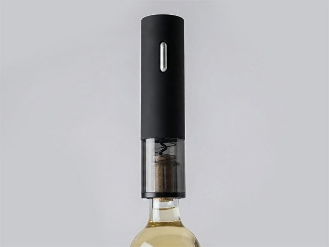 Электрический штопор – незаменимый подарок для ценителей вина. Его корпус выполнен из пластика с тактильно приятным покрытием soft touch. На штопор можно нанести логотип компании. В комплектации: штопор, подставка, инструкция по использованию. Батарейки в комплект не входят. • Подставка для штопора дополнена ножом, предназначена для срезания фольги с горлышка винной бутылки; • пробка выкручивается с помощью нажатия всего одной кнопки; • скорость открывания – 7 секунд; • работает на батарейках «АА» (4 шт.); • уровень шума до 65 Дб; • диаметр пробки: 18-24 мм; • наружный диаметр бутылки не более 40 мм; • поставляется в брендированной коробке с шубером. Нижняя и верхняя часть одной и той же кнопки отвечают за спуск и поднятие спирали, которая вытаскивает пробку из бутылки.