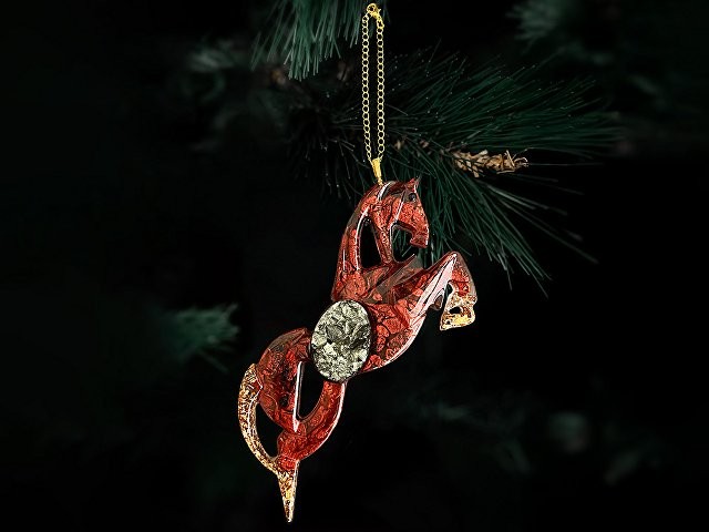 Лошадь - олицетворение свободы, силы и стремления вперёд. Фигура выполнена в динамике — будто застыла в прыжке, передавая энергию движения и благородства. Создана из ювелирной эпоксидной смолы и украшена природным камнем. Игрушка бережно упакована в картонную коробку с внутренним вкладышем, который надежно фиксирует её внутри. Для вашего удобства к игрушке прилагается цепочка или ленточка, с помощью которой вы легко сможете подвесить её на ёлку.