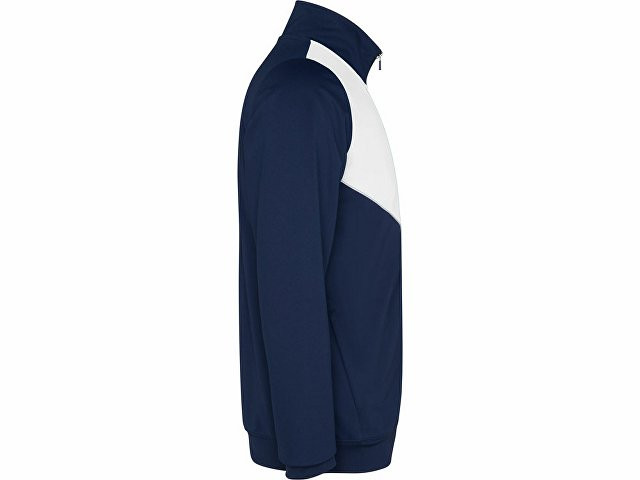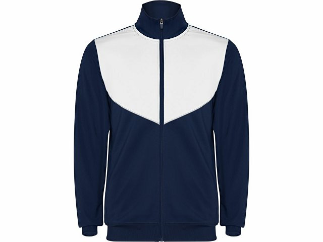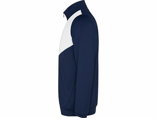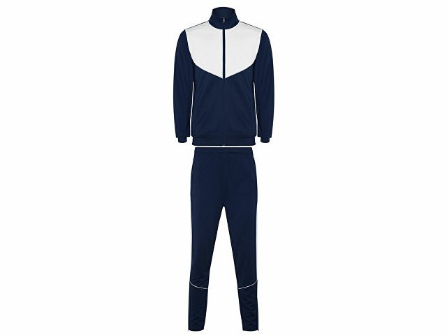 Спортивный костюм из облегченного и эластичного материала. - куртка с контрастными вставками и кантами - высокий воротник с контрастами строчками - центральная молния - боковые карманы - риб 2х2 на манжетах и низу - контрастные боковые части с кантами - молнии по низу - брюки на эластичном поясе со шнурками