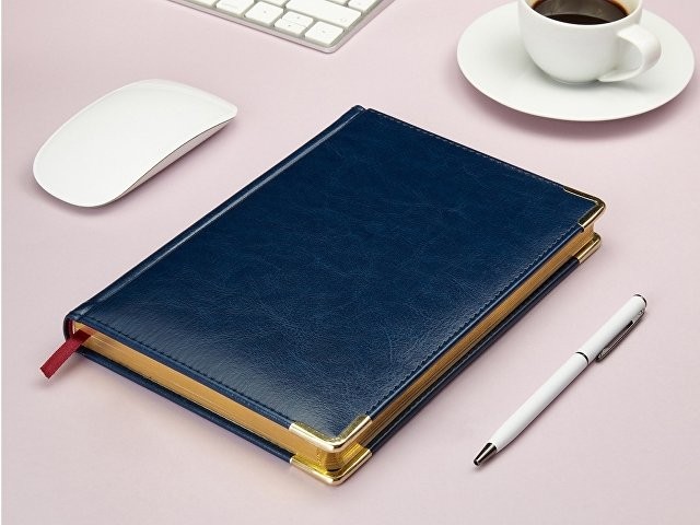 Ежедневник А5 датированный «Sidney Nebraska» 2026, синий (золотой обрез, золотые уголки)