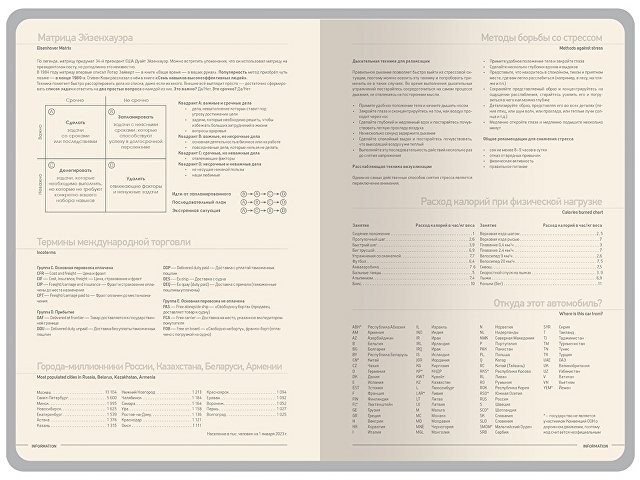 Стильный и современный, практичный и удобный, недатированный ежедневник "Megapolis Color" от Bruno Visconti для планирования рабочего времени и ведения деловых записей. Обложка изготовлена из искусственной кожи с Soft Touch покрытием. Обрез выполнен в цвет обложки ежедневника. Блок состоит из 272 страниц бежевой бумаги плотностью 70 г/кв.м. Для удобства навигации предусмотрена закладка-ляссе шириной 7 мм в цвет обложки. Недатированные страницы в серую линейку имеют отдельное место для проставления числа месяца и дня недели. Справочный блок на 17 страницах содержит полезную информацию из различных областей. Ежедневник выпускается в формате А5.
