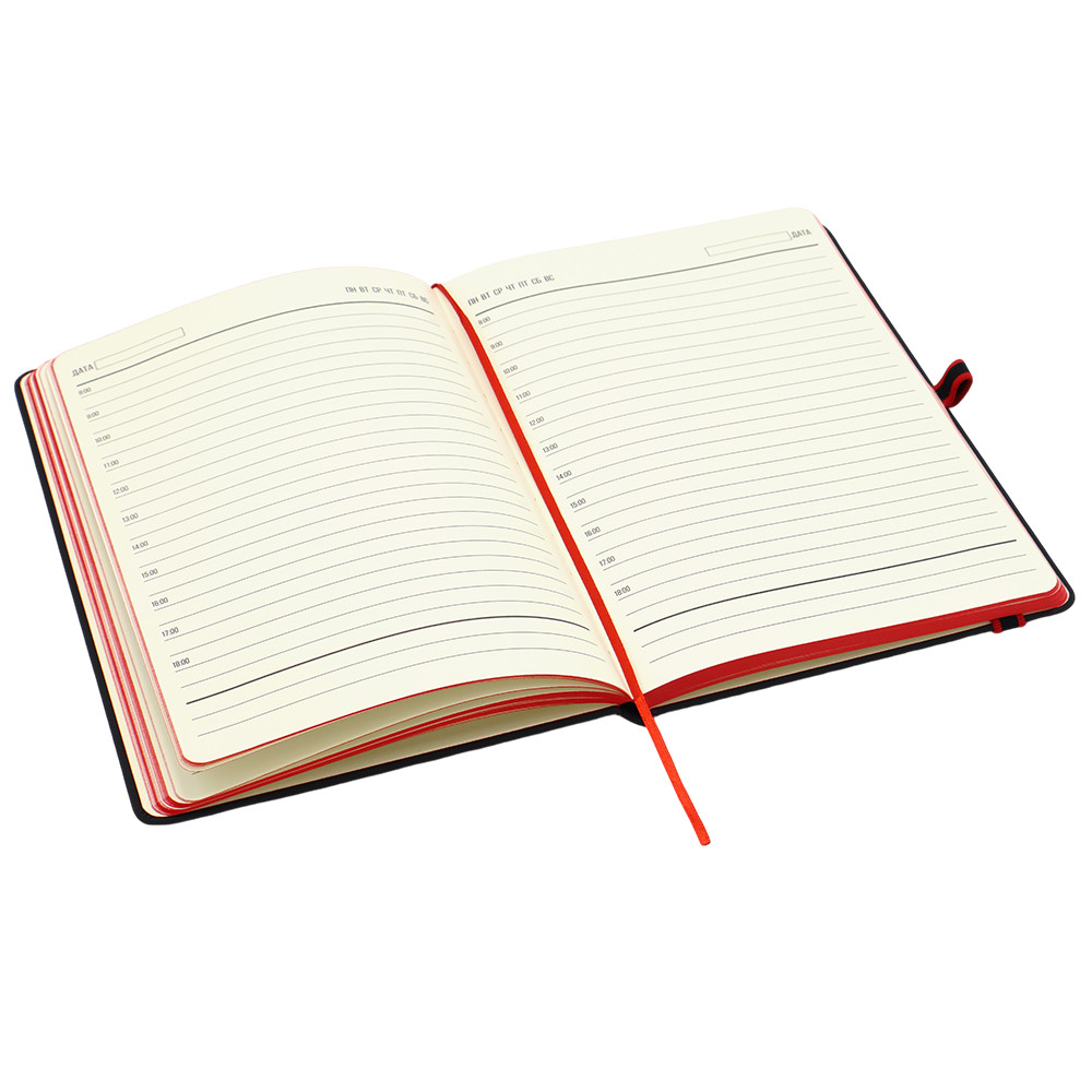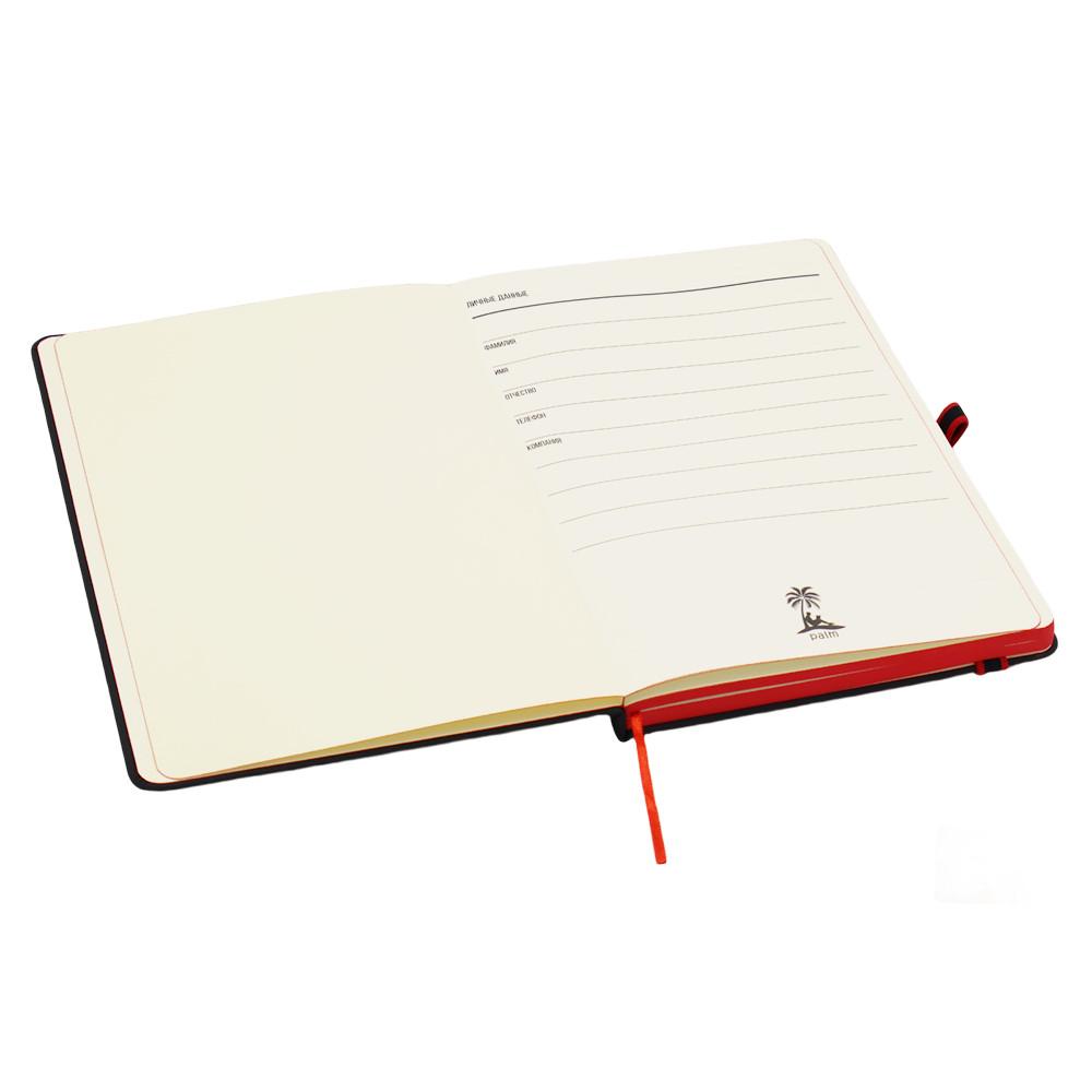 Ежедневник Sir Lewis — выполнен в твердой обложке. Имеет удобную, широкую резинку (1 см.) и держатель для ручки с ярким акцентом. Закладка и край — также в акцентном цвете. В начале ежедневника страничка с личными данными. Тактильный на ощупь, его не хочется отпускать! Только вы, ваши мысли и PALM™.