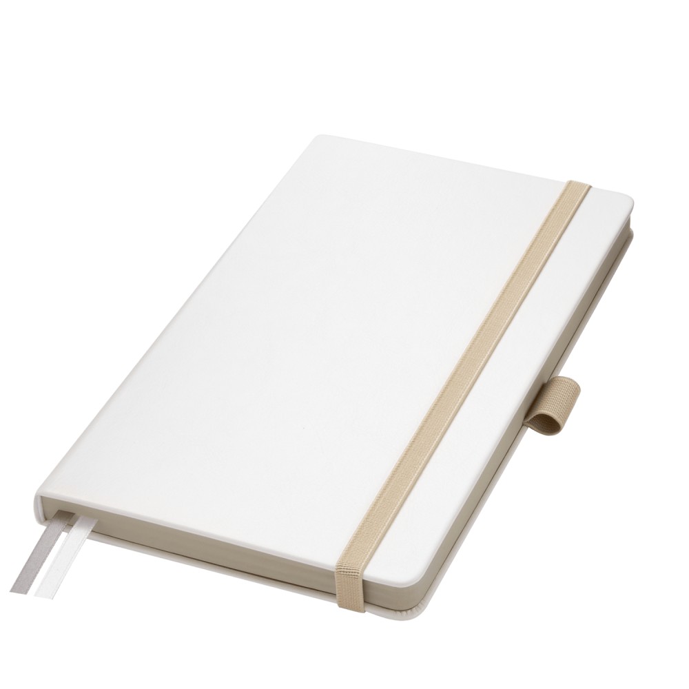 Недатированный ежедневник выполнен в жесткой обложке из искусственной кожи со скругленными уголками. Переплетный материал гладкий, с легкой естественной паутинкой морщин, имеет полуглянцевый блеск. Цвет – чистый белый. Серые матовые форзац и нахзац, а также серо-бежевый срез блока создают оригинальный динамичный цветовой ансамбль и подчеркивают белизну обложки. Страницы светло-кремового цвета, из гладкого офсета, слегка шелковистые, со скругленными уголками. Добавляют изделию мягкую комфортную теплоту. Двойное атласное ляссе составлено из серой и белой лент. Каждая шириной 6 мм, имеет легкий блеск. Вертикальная фиксирующая резинка прочная, надежная и удобная, в тон срезу. Есть петелька для ручки в тон резинки. Карман на заднем форзаце.