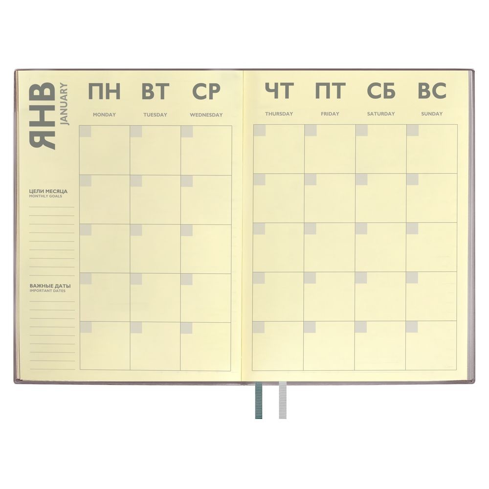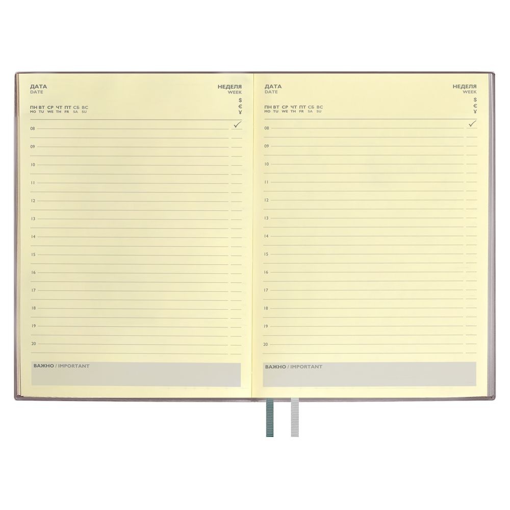 Расчет нанесенияЕжедневник с гибкой обложкой и закладкой из искусственной кожи, дополнен капталом и двойным ляссе.