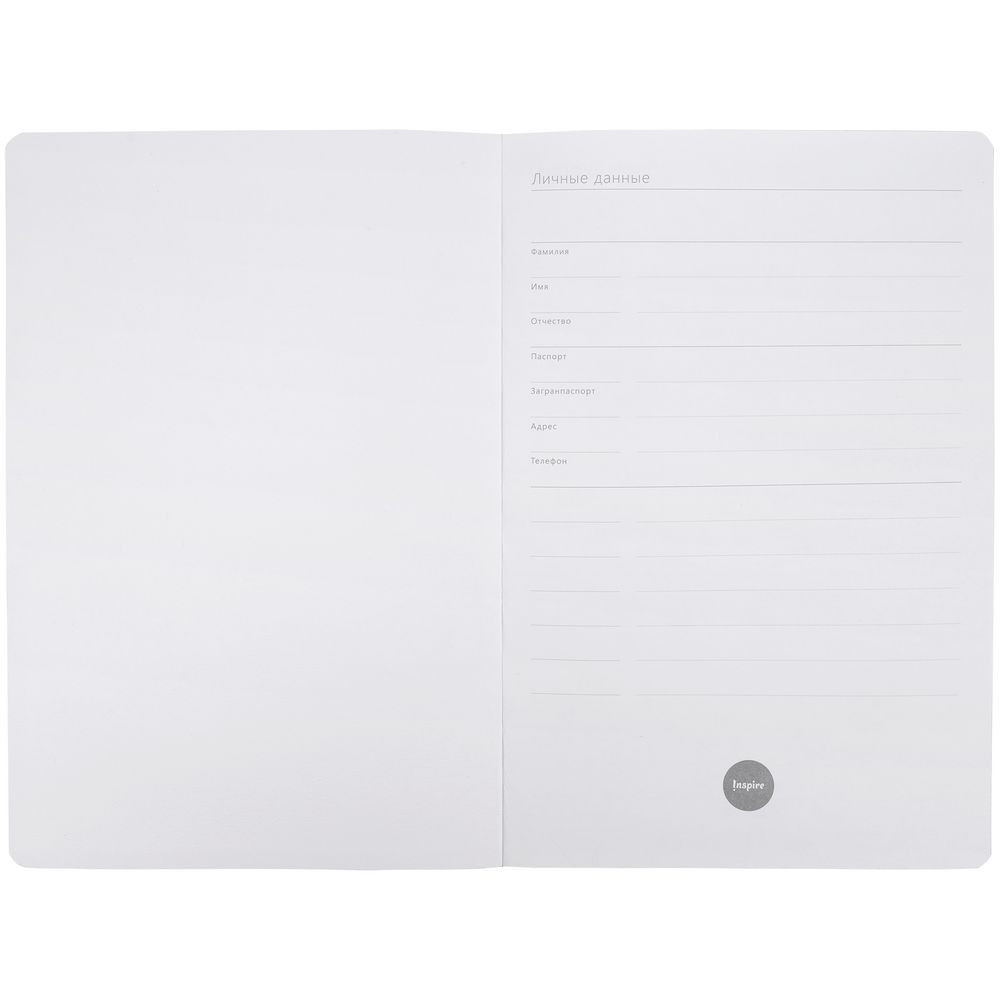 Ежедневник с твердой обложкой и тонированным обрезом. Выполнен из материала Latte, серый, дополнен ляссе в цвет обложки.