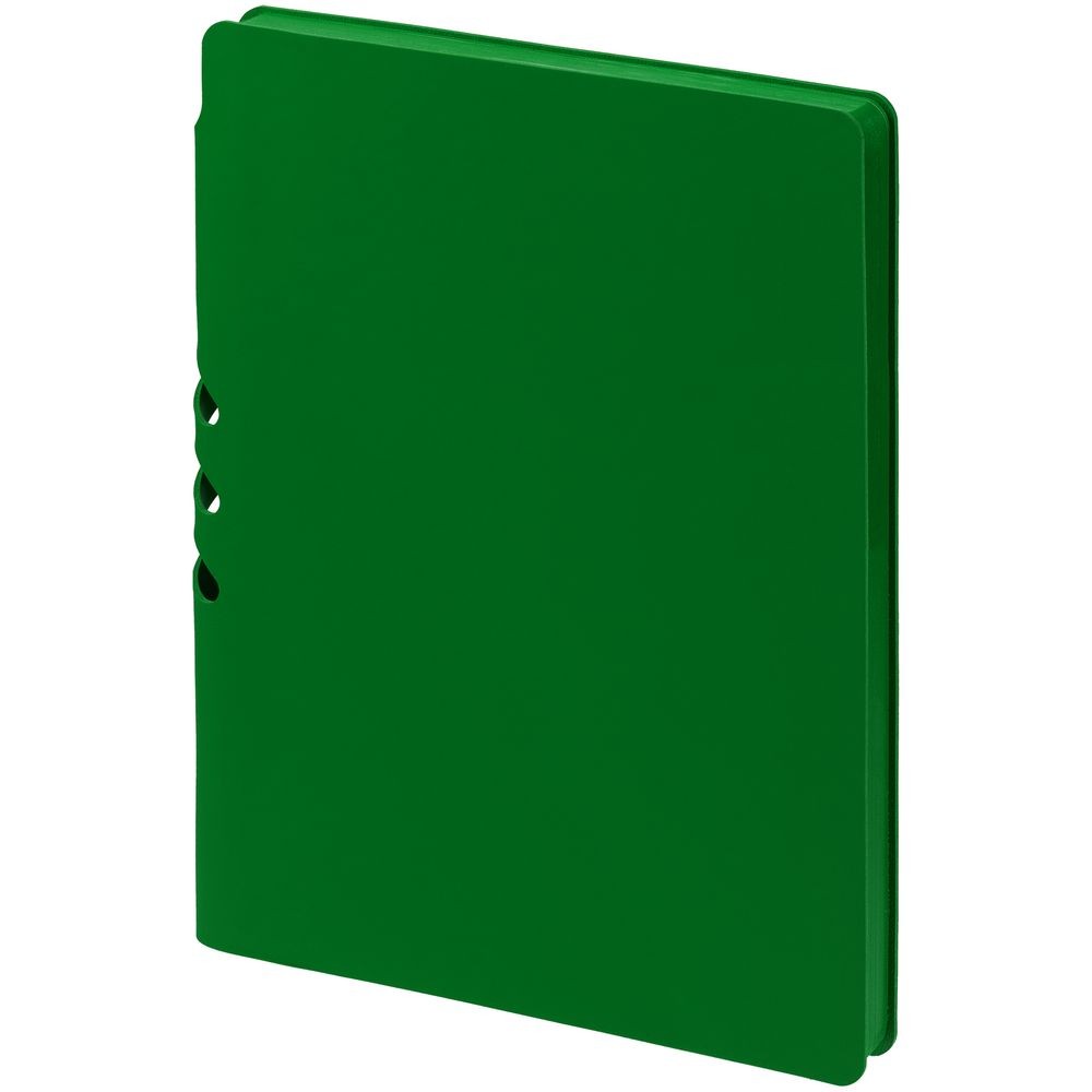 Гибкая обложка выполнена из материала Soft Touch Ultra, зеленый FF и Latte, зеленый FF (внутренняя часть обложки). Внутри корешка — специальное место для крепления ручки размером до 15х1 см.