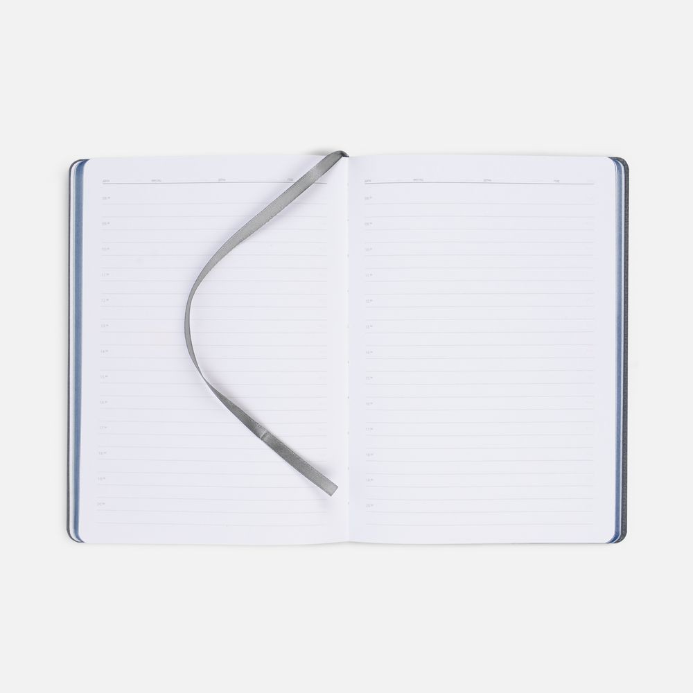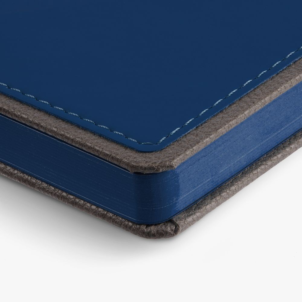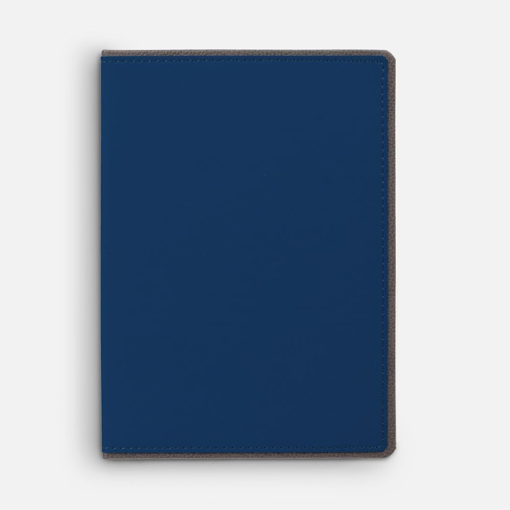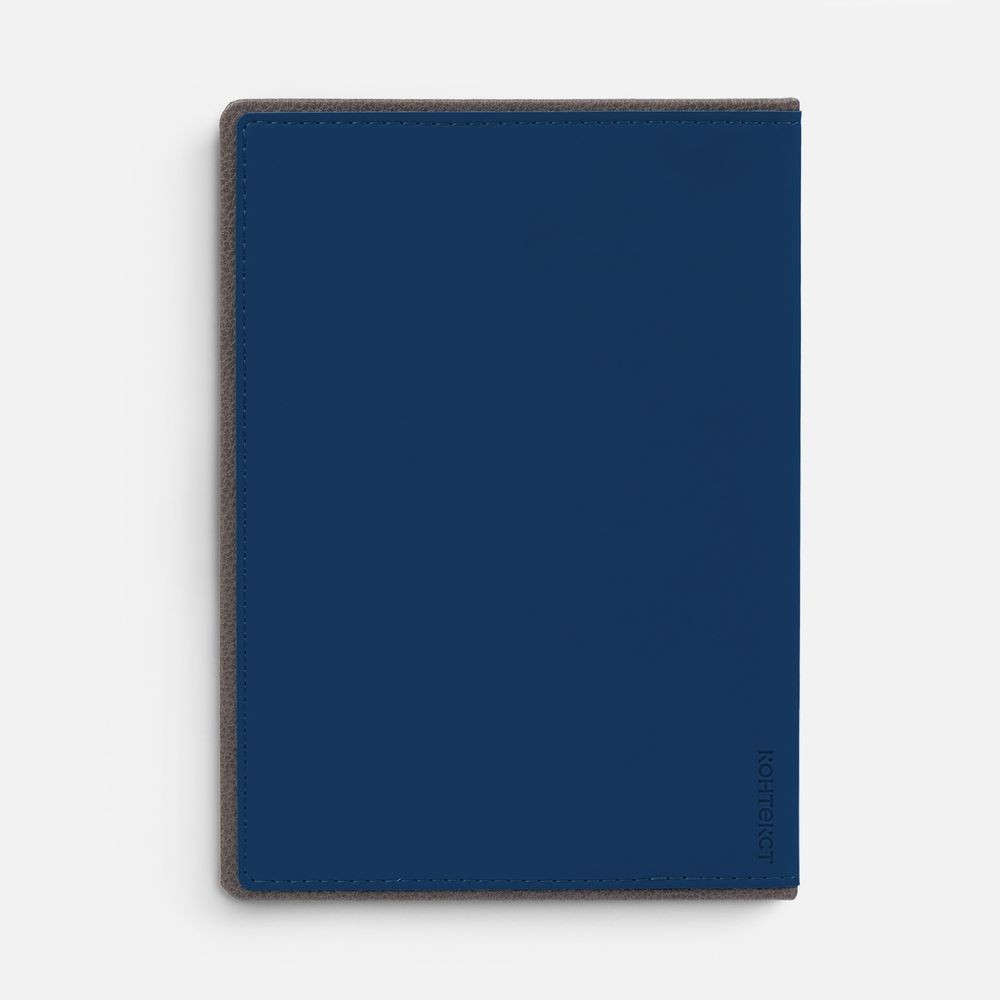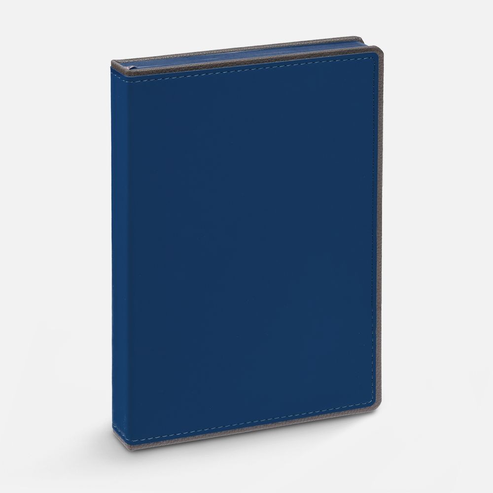 Ежедневник с твердой обложкой, выполнен из материалов Soft Touch Ultra, синий НН и La Fite, серый СС. Ляссе темно-серого цвета.
