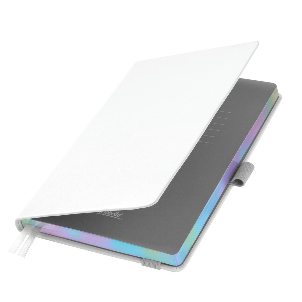 Недатированный ежедневник в жесткой обложке из качественной искусственной кожи. Материал обложки гладкий, текстурированный, с полуглянцевым блеском. Скругленные углы обложки и внутреннего блока. Отличительная особенность коллекции — голографический фольгированный срез блока. Форзац/нахзац– серые. Вариант в жесткой обложке украшен широкой вертикальной резинкой-фиксатором с вставкой из ПУ-материала обложки и петелькой под ручку, а также двойным ляссе (серым и в тон обложки).