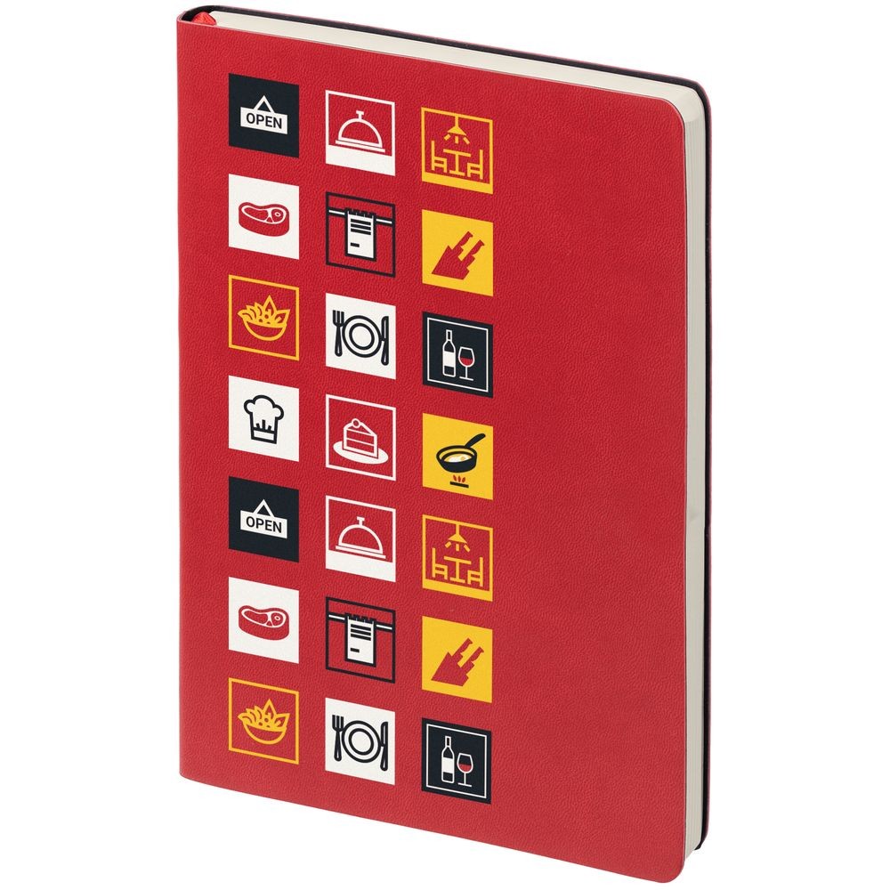 Расчет нанесенияЕжедневник с гибкой обложкой, выполнен из материала Latte, красный, дополнен ляссе в цвет обложки.