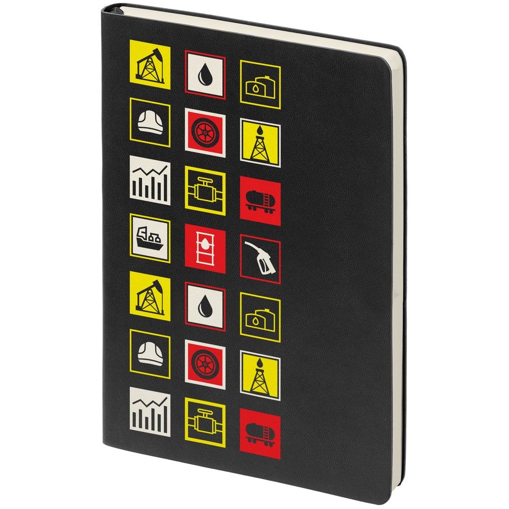 Расчет нанесенияЕжедневник с гибкой обложкой, выполнен из материала Latte, черный, дополнен ляссе в цвет обложки.