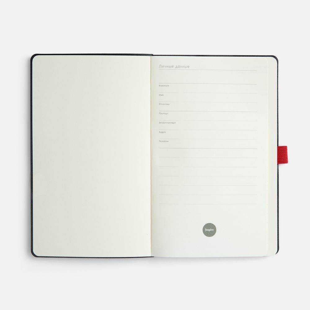 Расчет нанесенияЕжедневник с гибкой обложкой, выполнен из материала Espresso, дополнен цветными ляссе и петлей-резинкой для ручки.