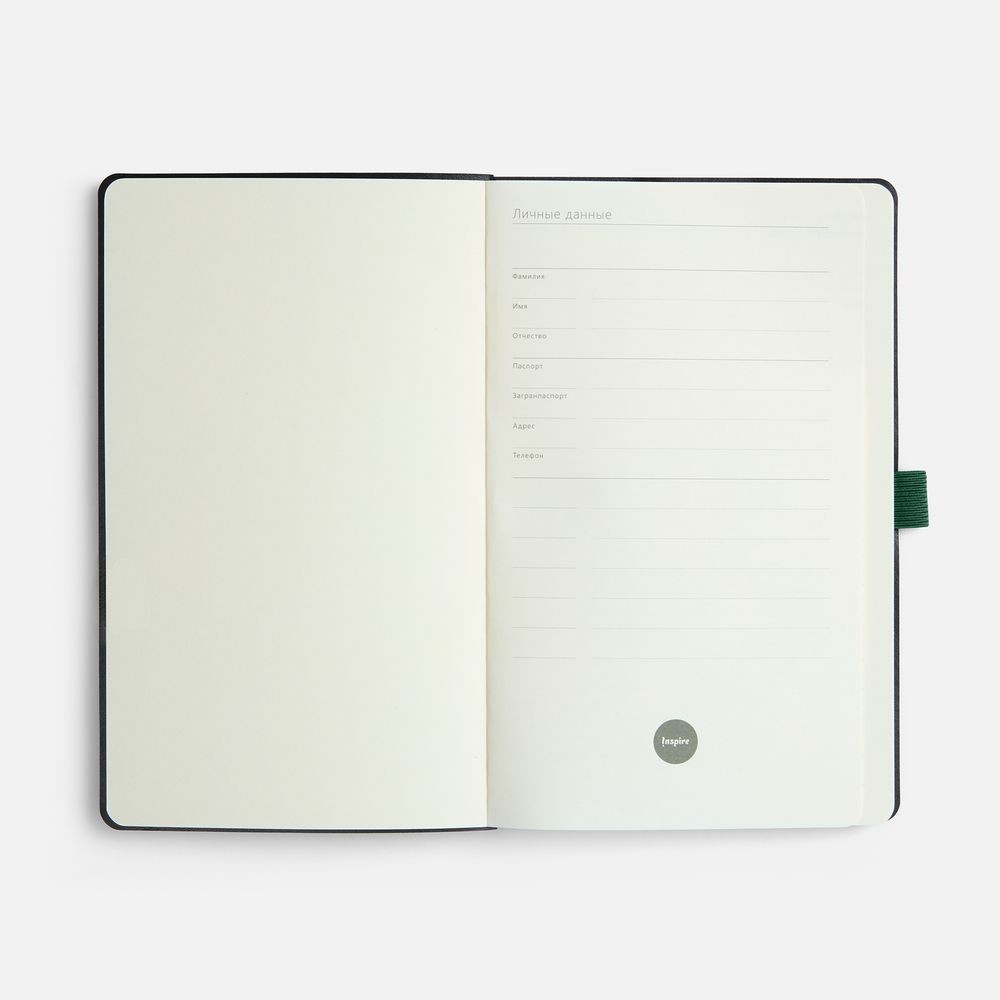 Расчет нанесенияЕжедневник с гибкой обложкой, выполнен из материала Espresso, дополнен цветными ляссе и петлей-резинкой для ручки.