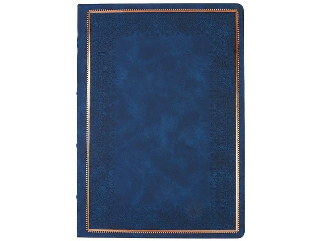 Недатированный ежедневник "Royal" формата А4 с твердой обложкой из искусственной кожи с имитацией нубука украшен художественным бронзовым и блинтовым тиснением. Внутри 192 страницы, выполненные из качественной бежевой бумаги в линейку плотностью 140 г/м². Два шелковых ляссе в цвет обреза блока и обложки облегчают навигацию по записям. Французский корешок дополнительно декорирован изящным бронзовым тиснением в виде виньеток. Скругленные углы обложки и блока подчеркивают стильный дизайн изделия, а блеск бронзового обреза дарит ежедневнику благородный и роскошный внешний вид.