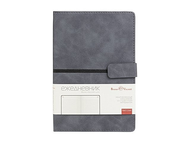 Недатированный ежедневник Lyon ТМ Bruno Visconti порадует всех поклонников утилитарных ежедневников. Классический переплет, декоративная строчка по краю твердой обложки, строгость линий, ляссе в цвет обложки. Магнитный хлястик как дополнение к этому строгому ансамблю. Ежедневник содержит блок из 272 страниц бежевой бумаги плотностью 70 г/кв.м: • раздел для планирования с линовкой и указанием времени с интервалом в один час; • страница для персональных данных; • страницы для планирования рабочих и личных дел по месяцам; • 9 страниц справочной информации (матрица Эйзенхауэра, методы борьбы со стрессом, термины международной торговли, города-миллионники, расход калорий при физической нагрузке, штрихкоды, размеры одежды, единицы измерения, энергетическая и питательная ценность продуктов, национальные праздники и др.).
