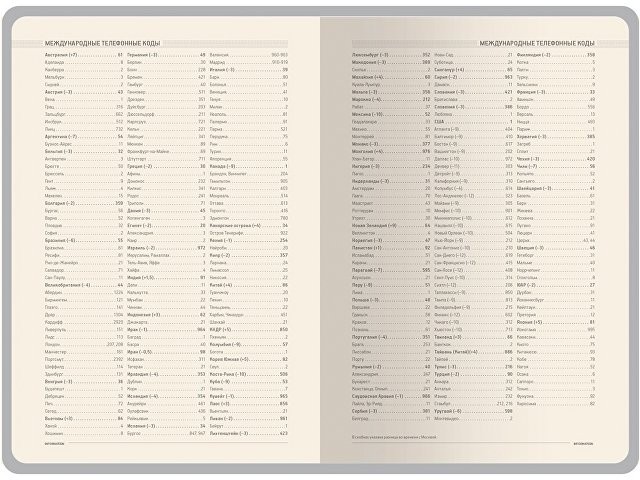 Недатированный ежедневник "Megapolis Nebraska" формата А5 в твердой обложке из искусственной кожи с закругленными углами, золотым обрезом - верх утилитарности и одновременно икона стиля. Ничего лишнего, ни одной необоснованной детали, и при этом сколько элегантности! Переплётный материал подходит для любого вида тиснения. Закладка-ляссе шириной 7 мм поможет быстро найти нужную страницу. Блок, произведенный из тонированной бежевой бумаги плотностью 70 г/кв.м, содержит: • страничку для личных данных; • 19 страниц справочной информации (телефонные коды, буквенные коды, города-миллионники, автомобильные коды, энергетическая и питательная ценность продуктов, национальные праздники, скорость, давление, температура, страны мира, единицы измерения, штрихкоды, термины международной торговли, греческие буквы, размеры одежды, формат бумаги, религиозные праздники, аэропорты Европы, допустимое содержание алкоголя в крови, время распада алкоголя в крови); • 26 страниц телефонной книги; • основной раздел для ведения записей в линовку с указанием временных интервалов в один час.