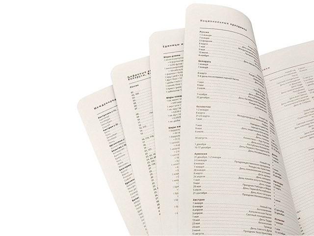 Недатированный ежедневник «PARLIAMENT» формата A5 в твердом переплете – элегантный деловой аксессуар, подчеркивающий статус владельца с продуманным до мелочей функционалом: - твердая обложка из высококачественной экокожи с декоративной нитью по периметру в тон ежедневника; - золотой срез, контрастирующий с цветом обложки; - скругленные перфорированные углы блока и двойное ляссе для удобства навигации; - внутренний блок с увеличенным количеством страниц - 352, содержит несколько разделов: - страница для персональных данных; - раздел справочной информации на 17 страницах (часовые пояса, аэропорты Европы, международные телефонные коды, размер одежды, телефонные коды России, Беларуси, Казахстана, Армении, цифровые автомобильные коды, римские цифры, расход калорий при физической нагрузке, формат бумаги, десятичные приставки, единицы измерения, греческие буквы, штрихкоды, время распада алкоголя в крови, города-миллионники, национальные праздники, термины международной торговли, температура, скорость, давление, буквенные коды стран, энергетическая и питательная ценность продуктов, страны мира, заметки); - раздел для планирования с разлинованными листами и указанием времени с интервалом в один час; - картонный слив-бокс.