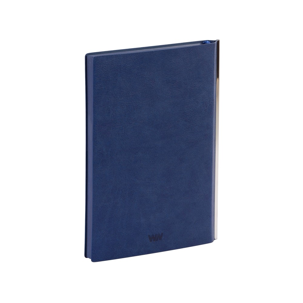 Притягивает внимание, офисные принадлежности и желание что-нибудь срочно записать. Минималистичный в оформлении ежедневник «Аскона» представлен в ярких насыщенных цветах с цветным срезом. Гибкая обложка имеет фактуру натуральной кожи, её дополняет металлическая планка корешка. Блок из плотной тонированной бумаги в 256 страниц удобно использовать с синей лентой-ляссе в цвет среза ежедневника.