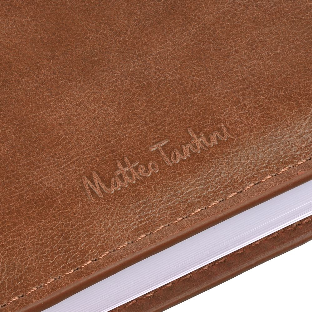 Ежедневник с полутвердой обложкой из натуральной кожи с поролоном. Каптал, репсовое ляссе и окрашенный срез обложки в цвет материала.