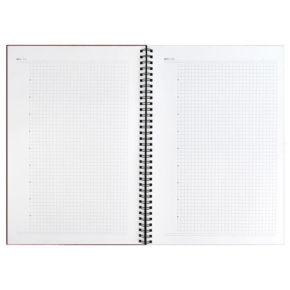 Ежедневник с интегральным переплетом, гибкой обложкой и обстрочкой по периметру на открытой пружине.